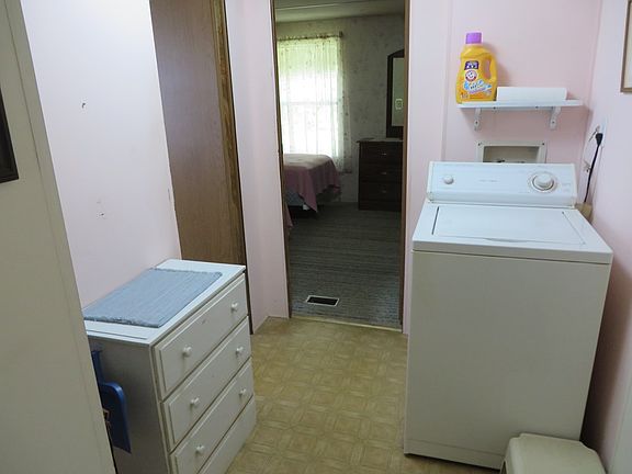 This is a 2 bedroom single wide mobile home in an adult park, on nice level lot and 2 storage sheds (one is good sized w/electric) Has added room on back with a wood burning stove, Big porch to enjoy the surrounding setting in a quiet pleasant, restricted area, small pet ok. Unit in need of some repairs to added room, and bathroom needs up- dating. The unit has been painted and is nice & clean. Metal roof over all and a detached carport. This is in a 55+ area of mobile homes. Lot is included