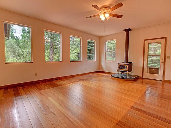 Don't miss this one level, ranch style home conveniently located 2.5 miles to town. This cedar sided home offers wonderful privacy with 3 bedrooms 2 bathrooms, office, and large open deck in the backyard lets you relax outside while you enjoy the natural surroundings. The home is 2,155 square feet all on one level with a 2-car attached garage. There are fir wood floors in the living areas, large picture windows that let the outside in, and a wood stove to keep your home cozy in cooler months. The property also features a large covered RV carport with a heated attached workshop. Nice large open lawn areas, fruit trees, and planted garden sections make this attractive yard easy to maintain. This property is a must see!