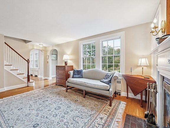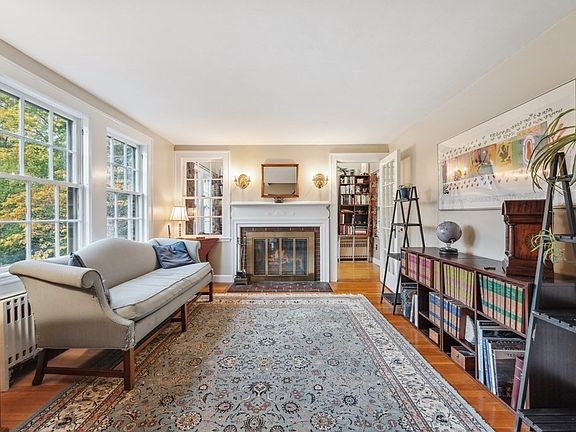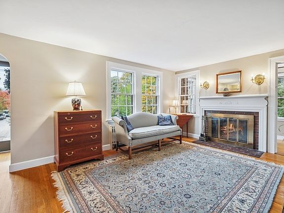 This expanded Cape-style home, thoughtfully renovated in 1989, seamlessly connects indoor spaces with a private yard and gardens. Notable features include arched windows and exterior doors throughout the addition. The primary bedroom impresses with a soaring skylit ceiling, French doors leading to a spacious balcony, two walk-in closets, and maple flooring. The skylit primary bath features a Jacuzzi and makeup area with double sinks. The spacious family room has a fireplace, side deck for grilling, and French doors to a beautiful bluestone patio overlooking a lush yard with mature plantings and amazing play structure. Additional highlights include a first-floor bedroom, cathedral-ceilinged office, lower-level playroom, a well-equipped kitchen, second floor laundry, a new roof (2021), 4-zone gas FHW heat, and easy access to the "Old Res", Idyllwilde Conservation area and public garden