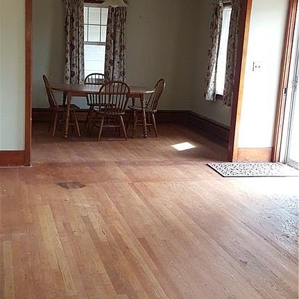 Ranch style home with attached one car garage set on open 5 acres ground (with plenty of extra paved)3 bedroom 1 full bath, full kitchen, dining room, and living room with a big picture window great panoramic pastoral sunset views. Fantastic closet spaces throughout. Exposed hardwood floors throughout the main floor.It has a full open basement with bilko doors. There also a treat a walk up attic. It has an attached enclosed breezeway connecting the house and the garage via separate entrances. The house has a newly singled roof with seamless gutters, a new hot water baseboard furnace, a new 80 gal hot water heater, and new windows throughout. Few extra special bonuses include 2 large outbuildings, both having two floors and a cinder block construction. First is 37'x90' and second is 18'x44'. Both needing a creative visionary for support. (Water and electric can be extended for service)The other bonus includes additional functional acres the added to this property. It has an existing trailer pad, utility pole, it's own drilled well (second one on property), septic and shared driveway. Great potential for an additional income source.