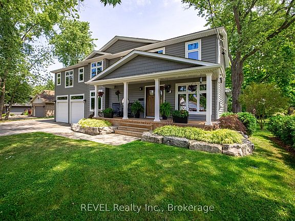 Welcome to 74 Montgomery Rd. in Welland, where modern luxury meets country charm on the edge of Fonthill.Completely rebuilt from the studs in 2020, this custom-designed 4 bedroom, 3.5 bathroom home offers over 2310 sq. ft. of beautifully finished above-ground living space on a spacious half-acre lot. Every detail reflects quality craftsmanship, high-end finishes, and thoughtful design.Step inside to a bright open-concept main floor featuring a warm gas fireplace and a stylish kitchen with Silverlake cabinetry, quartz countertops, and a bonus butler's pantry, perfect for entertaining. Throughout the entire home including the finished basement, you'll find engineered hardwood flooring for a seamless and elevated feel on every level. A convenient main floor powder room adds functionality for guests.Upstairs, you'll find 4 generously sized bedrooms, including a serene primary suite with a large walk-in closet, spa-inspired ensuite with heated floors, and a private balcony. 2 bedrooms share a Jack-and-Jill bath, while a 4th has access to a 3rd full bathroom. A spacious 2nd-floor laundry room adds everyday convenience.The finished basement offers even more versatile living space, including a family room, dedicated office nook, and home gym. With dual furnaces and dual A/C units, comfort is ensured year-round on every level.Step outside to your private oasis. A newly screened-in covered porch is perfect for morning coffee or relaxing evenings. Professionally landscaped front and backyards with in-ground irrigation, a built-in hot tub, and a stunning stone fire pit create the ideal setting for outdoor living and entertaining. Additional features include a gas line for your BBQ, gutter guards, and an extra-high heated garage with hot and cold water. Located just minutes from trails, shopping, and highway access, this home offers the perfect balance of peaceful, private living and everyday convenience.This isn't just a home, it's a lifestyle. Come experience it for yourself!
