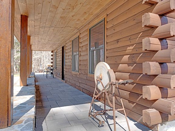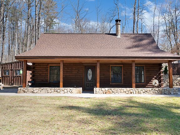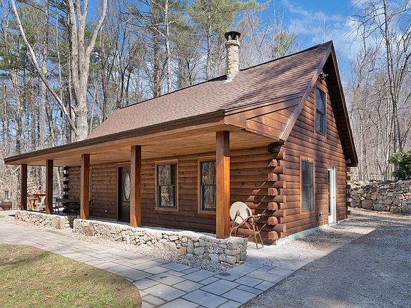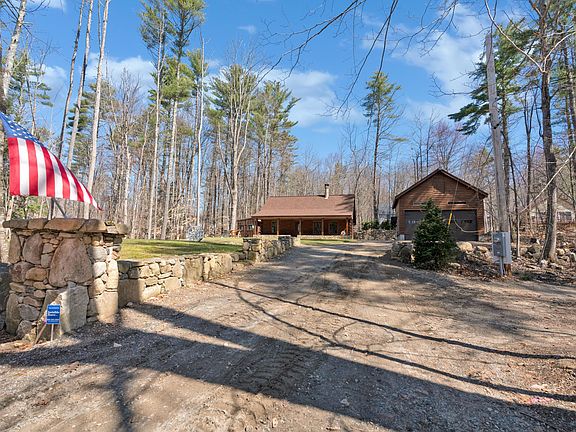 Welcome to your year-round retreat across from Horn Pond! Upon entering the home, a custom stone spiral staircase catches the eye, seamlessly blending craftsmanship with natural elements. Inside, the warm glow of wide pine boards embellishes the floors, infusing each room with a cozy atmosphere. The primary bedroom features a stone mantel, adding a touch of refinement and character. Practicality meets style with hideaway cord storage in the main living area, ensuring a clutter-free environment. For those chilly evenings, the wood stove in the main living space and the heated garage provide a welcome retreat, while a storage shed offers ample space for outdoor equipment and tools. This charming home was built in 2019. It provides the perfect blend of serenity and convenience with its right of way to a private sandy beach of 100ft on Horn Pond with easy access to waterfront activities all year. At the same time, you listen to the loons on relaxing summer nights. This house harmonizes luxury with nature, offering a peaceful sanctuary for those seeking a retreat from the hustle and bustle of everyday life.