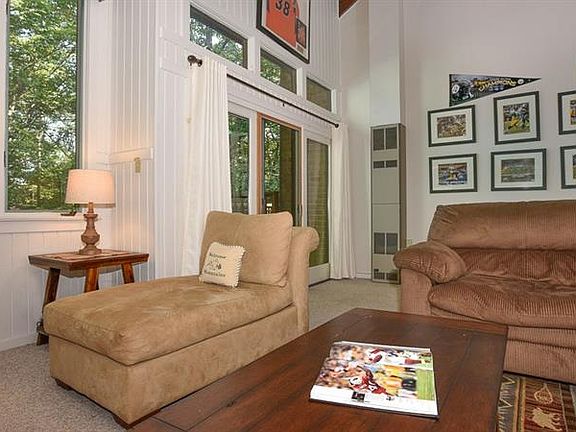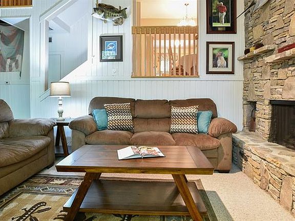 Well maintained, furnished townhouse adjacent to Seven Springs golf course. Smell the mountain air from the expansive deck overlooking the woods. Enter your home on the main level with kitchen, dining, powder & laundry. Walk down to the spacious living room with stone faced wood fireplace and deck. Climb the stairs to the master bedroom and bath. There are 2 more bedrooms on this level sharing a bath. The loft bedroom with powder room is perfect for the kids. Very fast shuttle service to the resort. HOA covers cable tv, water/sewage, firewood, security, maintenance on furnace, AC, hot water, common areas, swimming pool. You only pay electric and internet.