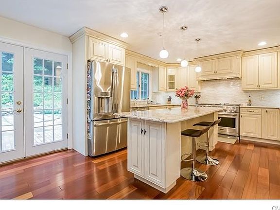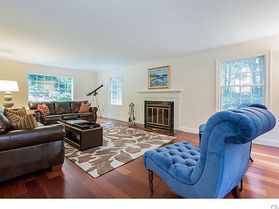Prime South Wilton Location! This center-hall colonial in desirable Silvermine neighborhood, bordering Golf Course, offers a bright & spacious first floor with beautiful Brazilian Cherry hardwood floors. Fabulous Chef's kitchen with granite and stainless steel appliances features a professional grade 8 burner duel fuel stove and two ovens. Living Room w/ fireplace, formal Dining Room, large Family Room w/fireplace, vaulted ceiling, and wet bar and four season Sun Room. This floor plan is ideal for entertaining with French doors from Kitchen and Sun Room leading to patio, pool and gazebo. Spacious basement with fireplace just waiting to be finished. Great for commuting and convenient to everything.