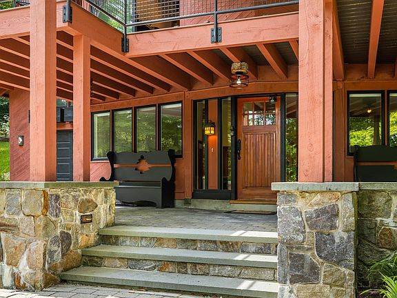 PREMIER and COVETED North Brookwood location at Stratton Mountain Resort! Ski home to the Covered Bridge and neighborhood or catch the shuttle. This exceptional home is turn-key, privately situated on 1.5 acres and ready to be enjoyed throughout the seasons. Updated interior and well maintained with new roof and deck. Spacious and welcoming great room with cathedral ceilings, walls of glass and dramatic wood burning hearth. Gourmet kitchen with stone countertops, upscale appliances opens to dining area and great room. Additional family room with sunny exposure opens to the back deck and spa.Top floor primary suite offers, privacy, beautifully updated bath, walk in closets and woodland views.Wonderful front deck is both open to the sun and partially covered to enjoy through out the seasons. Additional back deck with hot tub, offers more outdoor space to enjoy beneath the stars.Wood floors, tile baths, lovely entry and mudroom. 4 Bedrooms/3 Baths, garage. Shuttle and Stratton Sports Center Bond available. Don't Miss this one. If you are looking for an incredible resort residence in a perfect location for the winter and summer enthusiast, don't miss this one!