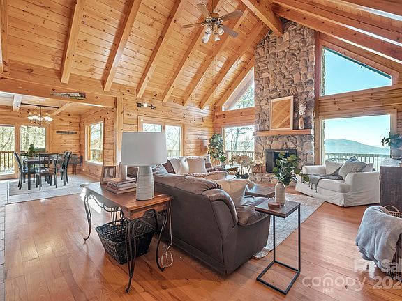 Beautiful Mountain Retreat, located in Quiet, Gated Community, w/Stunning, Panoramic Views as far as the eye can see! 2nd Living Quarters (Guest House) on property! With Plenty of Privacy, this home is nestled in the woods in back of Linville Forest community in The Blue Ridge Mountains, overlooking the sprawling Valley below! Tons of windows adorn this beauty, providing incredible Views from most rooms! Feel the nature in this home from gorgeous hardwood floors to wood planked walls, ceilings & Impressive, 2 Story, Stone, Wood Burning Fireplace to cozy up to! Primary Bedroom on main w/private bath & private living room! Kitchen features stainless steel appliances, custom, wood cabinets & Dining Area w/spectacular View! 2 Spacious Bedrooms on upper level w/full Bath! Escape to the Perfect Entertaining Space on an expansive Deck & Rock Patio below w/Hot Tub while enjoying gorgeous, peaceful scenery! Plenty of convenience nearby w/Golf Course, Linville Caverns, hiking & ski resorts!