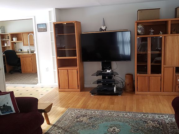 A Fully Furnished Rental Home in Lyme, NH on the N. Thetford Rd just 16 miles from DHMC and 13 miles from the Hanover Dartmouth College Green. The property has a large lawn, a beautiful view of Smarts Mountain and is less than a mile from the Post Pond recreation area. Situated well off the road, it is a great place to relax after work and on the weekends. For anyone employed at DHMC or Dartmouth College, this is an opportunity to live close to work and still be very much in the country. Walk, run or ride bike on quiet country roads, play tennis or swim at Post Pond. The house comes with 2 bedrooms, 2 bathrooms and a 2 car garage on a tranquil 6 acres. Amenities include high speed internet, satellite with two large screen TVs, a washer and dryer and a dry basement for storage or craft projects. The furnishings include kitchenware, towels and linens and some sports equipment with two bikes. Rent includes the internet, satellite TV, lawn mowing and snow plowing. Electricity and oil for heating and hot water are not included in the rent.