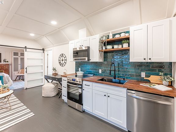 **Charming Remodeled 1-Bedroom, 1-Bathroom Home near Downtown Gresham** Welcome to this beautifully remodeled 1-bedroom, 1-bathroom home, offering an ideal space for those seeking a cozy, modern retreat in an excellent Gresham location. This thoughtfully designed living space combines the comforts of contemporary updates with classic character, all just minutes away from downtown Gresham in a charming historic neighborhood. The kitchen has been tastefully updated with butcher block countertops and all new appliances, providing a stylish yet functional cooking space, along with a pantry for additional storage. Whether you're preparing a meal or enjoying a quiet moment, the kitchen offers both beauty and practicality. The private bedroom features built-in wardrobes for ample storage and a charming fireplace that adds both warmth and character to the space. Close the barn doors and enjoy the privacy of this delightfully cozy retreat. Just outside you’ll find your own private patio and the expansive, fully fenced backyard, ready to be enjoyed. This large outdoor space is perfect for gardening, entertaining, or unwinding after a busy day.Located in a quiet, desirable neighborhood with no HOA or extra fees, this home offers the perfect opportunity to own a charming, low-maintenance property on its own lot. Don’t miss this incredible chance to start building equity with this minimalist dream, either as a rental or as your own primary residence. With its prime location just minutes from downtown Gresham's shops, restaurants, and parks, this property offers the best of both convenience and comfort. Don't miss out on this incredible opportunity to own your own home that's better than any condo. Remodeled homes of this price are incredibly rare and this one certainly won’t last long! Get your tour scheduled today!