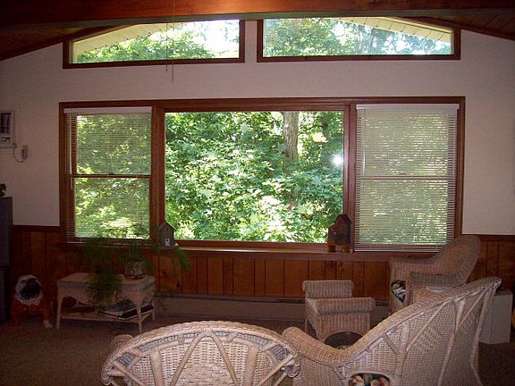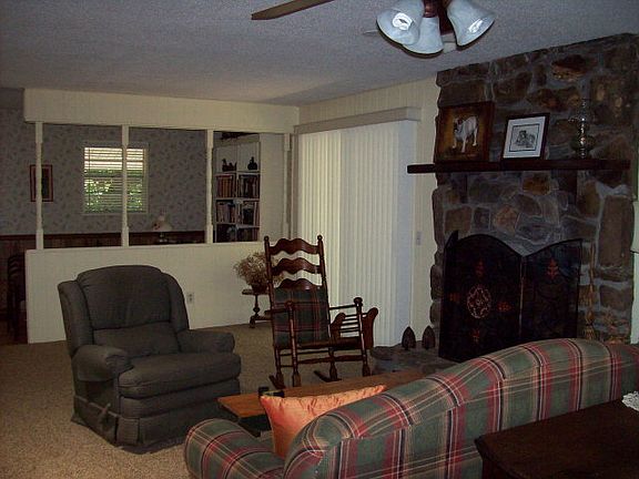 Dynamite property, full circular drive, two house access points. Totally SINGLE LEVEL LIVING! Spacious rooms and a vaulted and beamed family room with lots of windows. Wrap around deck, huge master bedroom, and a large kitchen area. Two car attached garage/workshop! This home is really nice and has 1.66 acres of gentle property for any and all activities, gardening etc. Gentle approach! Rocked fireplace, walk-in closets. All rooms in this home have DECK ACCESS.. it''s amazing! A new roof was installed in 2008 (architectural shingles)