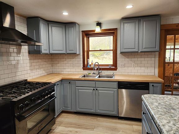 Hillside Ranch on a double lot with 2-3 Bedrooms, Large open Kitchen with a professional chef's gas stove and hood exhaust. Oversized heated garage with 3 garage doors and on a dead end road! Daylight basement has plenty of room for more living space or activities. Shopping, Restaurants and hospital all within 20 minuets!