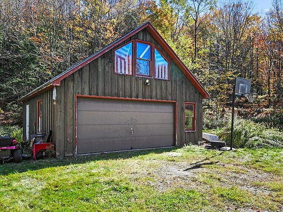 Discover a hidden gem in this 3-bed, 2full bath home on over 7 acres of land. Located just across the street from a tranquil brook. Step inside to find a sunny enclosed porch, living room with sliding glass doors, mudroom, eat in kitchen and 1st floor primary bedroom with full bath. The 2nd floor offers another 2 bedrooms, full bath with jacuzzi tub and a bonus room that can be used as a home office. The full basement with poured concrete walls is ideal for additional storage or potential living space. This home is equipped with modern amenities, including a brand new Fire Chief wood-burning furnace to supplement the electric heat, ensuring year-round comfort. A 2020 new well pump and updated electric system adds to the appeal, making it move -in ready. Outside enjoy the peace and quiet your expansive property, complete with a two-car detached garage with an upper level for all your storage needs and hobbies or can be transformed into additional entertainment space.