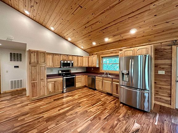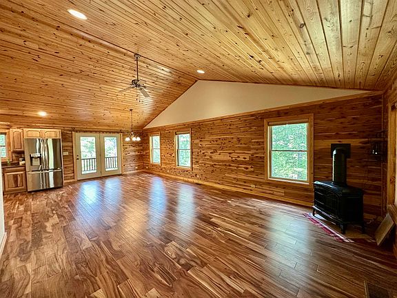 LOG HOME & 2 acres for sale in Norfork!! The main level of the home features an open floor plan with vaulted wood ceilings, a large kitchen area with custom hickory cabinets and new stainless appliances, two bedrooms and one bathroom with a walk in shower. The walk out basement area has one bedroom, one bathroom, a walk in closet, and a large utility room. All new hardwood flooring on the main level! Property has a large storage building that will convey as well as a large fenced in area for dogs. Conveniently located near Norfork Lake, White River, and Norfork River.