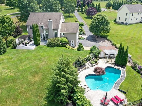 Beautiful custom colonial! This is NOT your "cookie cutter colonial" if you enjoy soaring ceiling heights, beautiful HW floors, EIK,butler's pantry, large DR and SPECTACULAR EXTERIOR SPACE then you will love this home! 1st floor highlighted by: kitchen with ss appliances open to sun filled FR with soaring 2 story ceiling and FP, DR with custom moldings and private living rm with french doors all with HW flooring.Real 1st floor MBR with WIC and spa style MB, designated laundry room and ½ bath completes 1st floor.Open 16x19 loft space leading to 3 nicely sized BR's all with HW flooring and second FB on 2nd fl. LL is partially finished perfect for family space/office or exercise room.Green space shines! Seller has created an outdoor oasis including: Stunning blue stone walkway,mature plantings, landscaping designed for blooms and privacy around the salt water heated gunite pool! Experience the Zen feeling on two-tier composite decks with pergola.74 Pacer Way a wonderful place to call home
