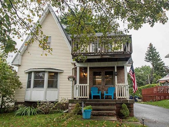 Amazing and Charming!! Two words to describe this 2 Bedroom, 1.5 Bath Colonial! Welcoming front porch! Spacious, bright eat-in kitchen with breakfast bar/island, & lots of cabinet and counter space! Kitchen appliances included. Living room w/hardwoods has nice flow from kitchen. Bonus den/sitting room off of the back porch 3 seasons room - This house is great for entertaining. Both bedrooms feature double closets! Master bath with tiled Jacuzzi tub! Sliding glass door to balcony/deck off the 2nd floor master! Large, updated half bath downstairs! The newer 2.5 car garage with a loft storage space, counters, cabinets, electric, and cable hook ups is perfect! Move in now and enjoy the lilac trees, garden, and patio, and porches this spring - this property is perfect inside and outside.