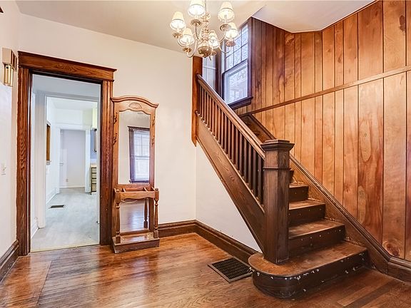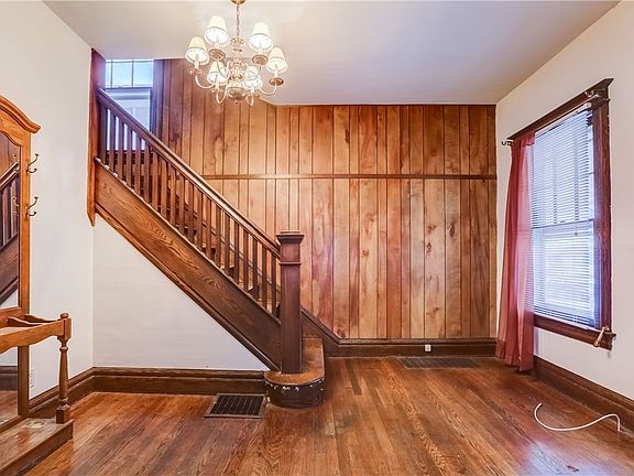 Charming Colonial loaded with beautiful natural wood trim (believed to be Oak not sure) just waiting for your polish and personal touches. Family & friends will be greeted by an open and inviting foyer. Hardwood floors can be found on 1st & 2nd floors. Spacious formal dining room approx. 13' x 12' +/- with window seat and pass through from kitchen looking forward to hosting your first gathering. The living room measures approx. 17' x 15' +/-. Home has 4 ample sized bedrooms and 1.5 baths. Full walk up attic screaming to be finished. You will find a 7' x 19' +/- enclosed front porch and a rear deck for use based on the weather. Home also offers a fantastic 2 car detached garage. Full basement has a storage room and vented glass block windows. The main roof only on the house was a tear-off approx. 5 years ago. This is an estate and property along with all appliances are being sold as-is. Pool table and work-out equipment also remain as-is. New proposed value per the City is $134,900 & the letter is attached to the listing. Delayed negotiations until Tuesday, 1/30/24 at 1:00 pm. Please allow 24 hours on life of offer.