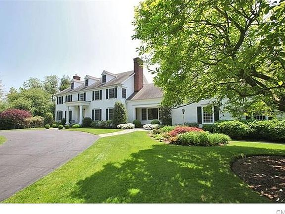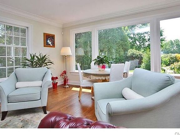 A magical oasis, this beautifully renovated colonial situated on over 2 acres on one of the highest points in town. Glorious sunsets over rolling lawns and specimen plantings grace this one of a kind estate. Each room complements and showcases beautiful vistas. A formal living room with fireplace opens into the dining room overlooking the chic pool and formal gardens. A bright and airy gourmet kitchen flows into a cathedral ceiling great room and all glass sun room with French doors. Every bedroom and bathroom has been lovingly renovated in elegant design. The master bedroom suite offers a wonderful sitting room, oversized walk in closet and a dramatic master bath in marble and spa tub.