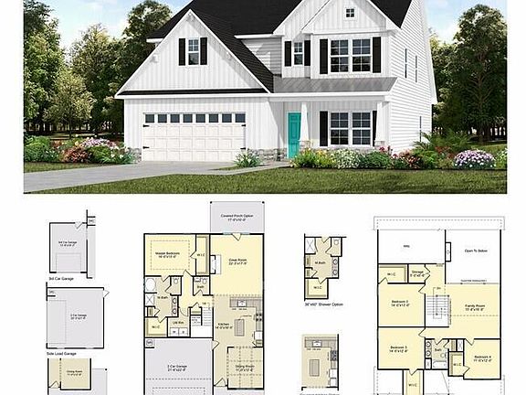Enter from the covered front porch into a welcoming foyer that is open to an elegant formal dining room with coffered ceiling and wainscoting details. The open kitchen with a large center island is perfect for hosting & entertaining guests. The spacious Great Room has a cozy electric fireplace and vaulted ceiling. The First Floor Master Suite is a true retreat! It has trey ceilings, 2 large walk-in closets, double-sink vanity, private water closet, & large walk-in shower! Also on main floor are the laundry room and a guest bath. Upstairs will lead you to a large Family Room with view to the Great Room below, a full bathroom with double-sink vanity, and 3 more bedrooms - each with walk-in closets.