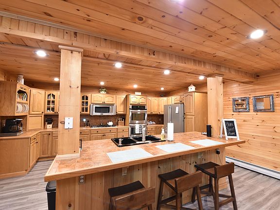 Maine country home for sale in Brewer, Maine. The first floor features a large mudroom with direct entry from the heated garage and plenty of storage space including built in benches that open for shoe storage. The open concept kitchen, dining room, and living room are spacious for relaxing or entertaining. The kitchen includes a large island with dishwasher and sink, as well as plenty of cabinet space. A cathedral ceiling in the living room opens to the upstairs loft area. Off the dining room you will find a large laundry room w/ full bathroom and a bedroom. This home also features an expansive master bedroom suite w/ full bathroom and large walk-in his and her closets. The second floor consists of the open loft with plenty of closet storage behind the sliding barn doors, and a bedroom w/ a half bathroom. There is a full basement with a finished bonus room, plenty of storage rooms and potential to finish additional space to add to the walk out basement. The attached 2 car garage is heated w/ automatic door openers. The spacious front and back yards are well maintained with 2 private ponds. Enjoy gathering and entertaining on the two decks or in the Gazebo in the expansive backyard. This home has a new shingled roof with remote controlled heat trace, two new 15000 BTU heat pumps, new Wi-Fi garage door openers, a generator hookup. The home is at the end of the road and has a large, paved driveway. Close to Bangor, Mount Desert Island, but still a rural setting.