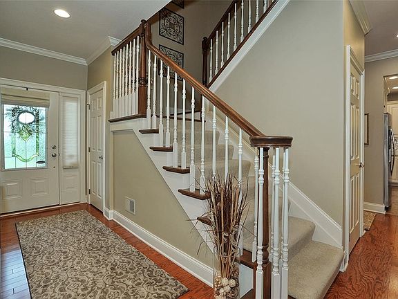 Custom built house with so many great features. Hardwood flooring in EH, GR, DR and hallways. Custom moldings around the doorways, windows, crown molding and high baseboards. Tray ceilings in the GR, DR, and primary bedroom. Kitchen with gorgeous cabinetry, quartz counters, backsplash,stainless steel appliances & large walk-in pantry. Spacious primary bedroom with a huge walk-in closet with closet organizers and spa-like bathroom with a large double bowl vanity and dressing area. First floor office. There are three more bedrooms and two more full baths. Off the dining room is a covered patio with side screens. The covered patio is 18x10. A portion of the yard is fenced. This is one floor living with a lot versatility in the floor plan. There is an oversized two car attached garage and big laundry room. On the second floor there is a large walk-in attic for additional storage. There is nothing to do in this home except move-in - so pristine and the condition is perfect.