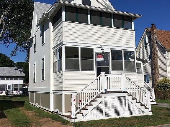 This is one of the best Connecticut shoreline vacation beach rentals available. It's the perfect location for a family vacation. This is a wonderful beach with easy waves and sand flats at low tide for the kids to build sand castles on. Four houses away from the beach with views of the Sound from the front porches. Four bedrooms, two double size beds, one 3/4 and one extra long twin bed. One bathroom with stall shower and an outdoor enclosed hot/cold shower. We have a full kitchen and a full dining room that opens through an archway to a full living room. The large kitchen is convenient for preparing those big shore dinners for a crowd. The downstairs enclosed front porch provides a protected refuge to enjoy the "outdoors". The upstairs front sleeping porch is screened in with higher walls for privacy. You can check the visibility across Long Island Sound from the upstairs porch. The enclosed side porch entrance has an indoor line to dry clothes on wet days and room to store beach gear and bikes. Bring your own linens including sheets, blankets, pillows, dish towels, and bath and beach towels. There is a fully equipped kitchen without a dishwasher. No a/c but we provide plenty of fans. The large dining room table has extra chairs. Steep shallow narrow stairs ascend to the second floor (built in 1889). Parking is behind with room for a small boat. Property is a summer rental only. Price is $1120 Per Week. Inquire for summer week availability.