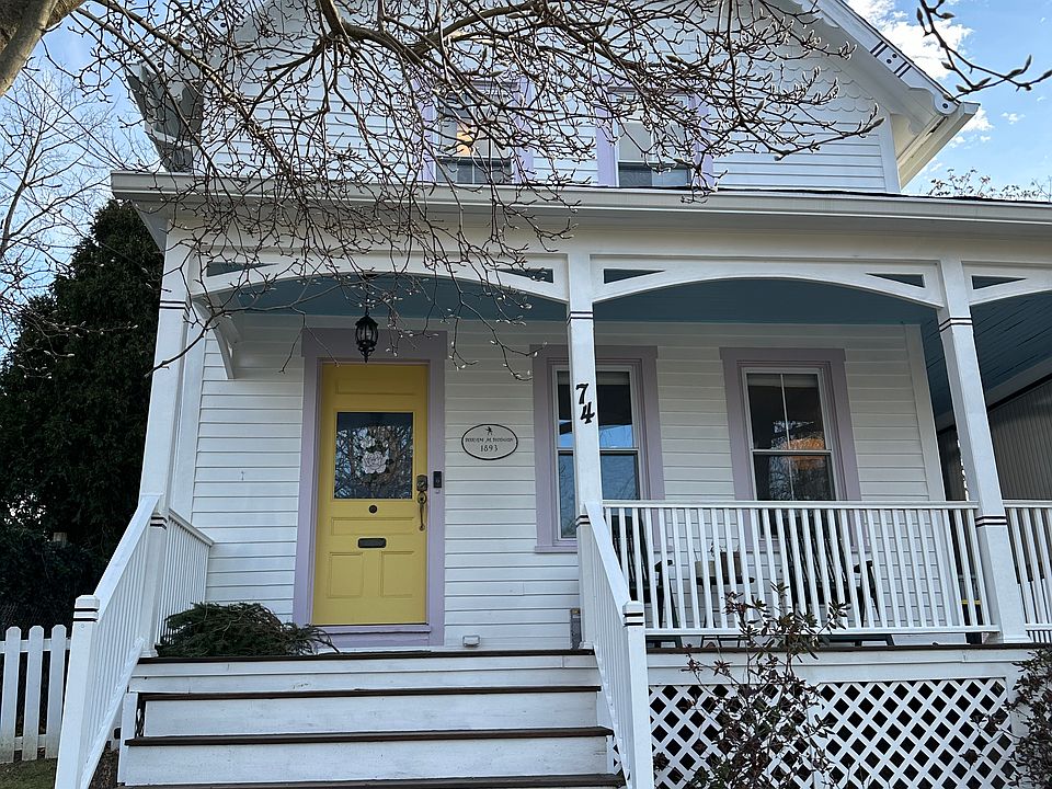 This charming Victorian sits high up on a ridge in the Groton Bank area with peeks of the Thames River. Sit on the covered wrap-around porch and watch the boats and subs go by as the sun sets. This beautifully updated home has hard wood floors, laundry on upper level and extra storage in walk-up attic. The back yard is fenced in with patio and shed for storage. Unfurnished, year lease required. Minimum credit of 700 please. Note: The 3rd bedroom is very small (crib or one twin only) and it has access to laundry/attic located in it. Probably best used as an office/studio. One year, Tenant pays electrity, oil, internet, water and takes care of lawn and snow.