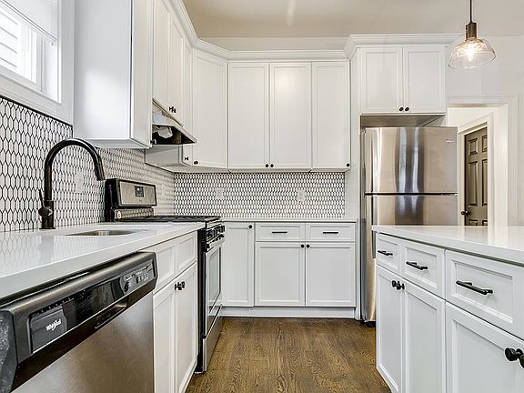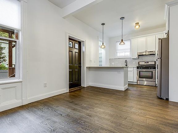 Welcome to this two-family residence located in The Heights neighborhood of Jersey City. Unit 1 offers modern finishes and desirable amenities, including a washer + dryer and outdoor space. The entry foyer features a coat closet and full bath, leading into a bright living room with bay windows, hardwood floors, and extra storage. The kitchen boasts matte black accents, white cabinetry, stainless steel appliances, and a large pantry. Enjoy meals at the breakfast bar or relax on the back deck, which leads to a private backyard oasis with new turf and pavers. Two bedrooms on the parlor level offer ample closet space, and the front bedroom includes bay windows and en-suite bath. Downstairs, find two more bedrooms, a powder room, and washer + dryer. Unit 2 also features modern finishes and amenities, including a washer + dryer and outdoor space. The three-bedroom, two-bath unit has hardwood floors, a coat closet, and a spacious living room with bay windows and a restored decorative fireplace. The modern kitchen boasts stainless steel appliances, a breakfast bar, and a beautiful backsplash. The primary bedroom offers a walk-in closet and en-suite bath with designer finishes. Unit 2 is generating rental income, while Unit 1 is currently vacant; ready for its new owner/investor. Conveniently located near Pershing Field Park, several bus stops, and 2nd Street Light Rail Station.
