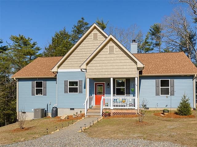 REEMS CREEK OVERLOOK - Everything was designed to take advantage of the views of the mountains and the sounds of the creeks. Placed perfectly on 5.11 acres with vast west-facing views of mountain vistas is this newer contemporary. Light & airy, a wall of windows brings in the views. Open the windows or walk out on the enormous covered deck & listen to the bold sounds of Reems Creek flowing along the lower property border. A pretty trail leads to the creek, passing a second creek on the way. Be sure to see the visual tour!