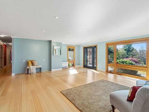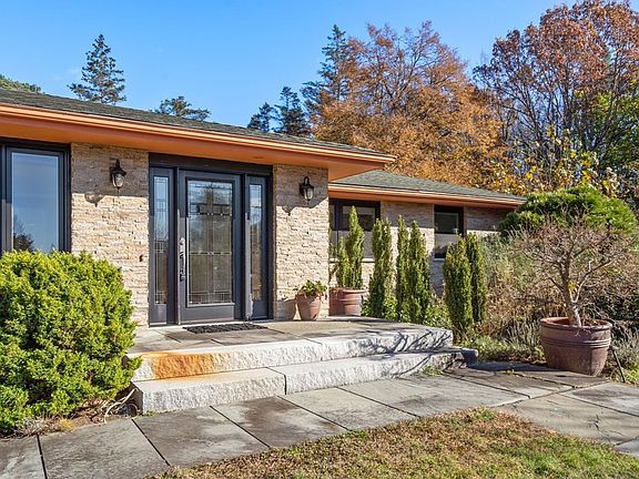 Transcend the .25 mile newly paved driveway to 15+ acres of tranquility and beauty close to the town center/library/schools and pool. This sprawling stone front ranch sits on parklike grounds and offers paths throughout the grounds for quiet time and deep thought while walking your dog or seeking exercise. There is private covered porch and a beautiful water feature on the rear patio. The main level offers an open floor plan with large great room/eat-in kitchen/office as well as 3 bedrooms and 2.5 baths. The walk-out lower level provides additional finished space and a sauna. Recent improvements include: 8 new Andersson windows and driveway 2022, AC mini-split, solar install 2021, new boiler and hot water tank being installed Nov 2023.There is frontage on both Richards Ave and Grove St. There are 2 barns/outbuildings on the property with electricity. One is on the Grove Street side. Buyer to assume solar lease transfer. Paperwork still being collected.