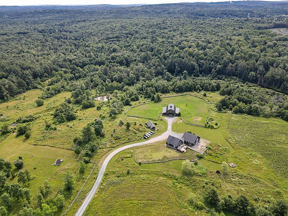PROPERTIES LIKE THIS IN AUGUSTA DO NOT COME ON THE MARKET OFTEN! Here is your chance to have a truly unique property in town with 97 acres with Riggs Brook running through it! Located just off of Riverside Drive, Riggs Brook Lane - a private dirt road - leads you through lush fields and pastures back to a sprawling compound that will make you feel like you're in the Mid-West. The residence is a live-edge-sided cape on a full foundation with 2 bedrooms, 1.5 baths, a loft, and plenty of living space. Connected to the residence via breezeway is a massive bonus area that could easily be converted to extra living space, a workshop, showroom, or an in-home business. The commercial area sits on a radiant heated slab, has a half bathroom, and multiple oversized rooms with sliding glass doors leading outside. The barn is currently setup with 4 stalls plus a birthing stall- all with turnouts. In addition to the stalls, the first level has a spacious tack room. Half of the upstairs is a hayloft with large doors to fit a hay lift. The other half is a studio apartment with a full bath. In addition to the barn, there is a tractor lean to with power hookup and a small storage shed. This property truly is unique.