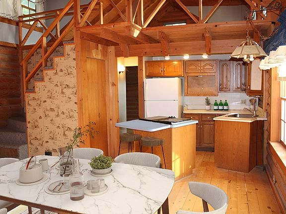 Log Cabin & White River View!! Enjoy scenic view from the deck or sunroom, 1 bedroom 2 bath log cabin with living-kitchen-dine combo, sunroom, 1 bedroom, loft for extra bedroom, full basement with 2nd bath, work benches, storage, or finish for extra living area. Land joins railroad at bottom of hill, view of White River opens up in winter months. Acreage is estimated, actual age is unknown, sq ft, lot size, etc, are from public record. Buyer to provide loan pre-qualify letter or proof of funds with offer. Seller will consider offers from owner occupants only until 7/8/23 (an affidavit confirming intent to occupy will be required), after 7/8/23 offers from investors will also be considered. To help visualize the floorplan virtual furnishings have been added to photos in this listing.