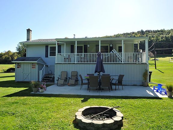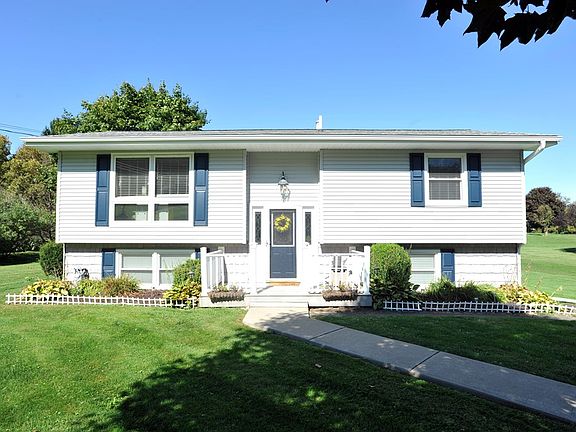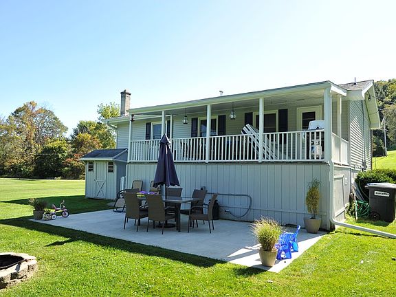 Enjoy the view of the hillside, while sitting in the comfort of your home! Many updates, including kitchen cabinets, floors, tile back-splash, and stainless steel appliances. Updated Main Level Bath, New Roof, and Siding too! Enjoy movie nights in the basement in the winter time with the cozy fireplace. Entertain indoors with the custom built bar, and entertain outdoors on the covered deck or extended patio. The back yard has a quiet country setting, perfect for enjoying the stone fire-pit with friends. This truly is a must see! Enjoy your showing!