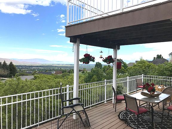 The view at this Elk Ridge home is breathtaking. When we bought it, we walked into the kitchen and looked out to see Utah Lake and the valley and said, "We want it!". We added a huge two story deck and finished the basement. We used to read with our tiny children out on the deck from the master bedroom. Under the garage is a huge storage room. It has a front yard with a ravine that is the backyard so there is no big yard to maintain. No pets. Tenant responsible for all utilities. Owner pays taxes.