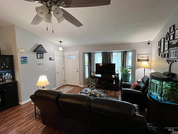 Like new 3 bedroom, 2 bath single level, 1126 sq ft home. New in 2021: 50 year roof with transferable warranty, new rain gutters, new HVAC, water heater, flooring, interior paint and more. Split bedroom design, master has its own bathroom with tub and shower, newly tiled. RV Parking available behind the fence and next to driveway for two RVs. 50 amp RV plug on garage side of house, plus ability to have 50 amp welder plug in garage. Electric upgraded to 200 amp panel. 10 X 8 ft storage shed included. beautiful back yard with extra fire pit area, covered patio, side storage next to house. 2 car garage includes workbench with metal pullout blue drawers.