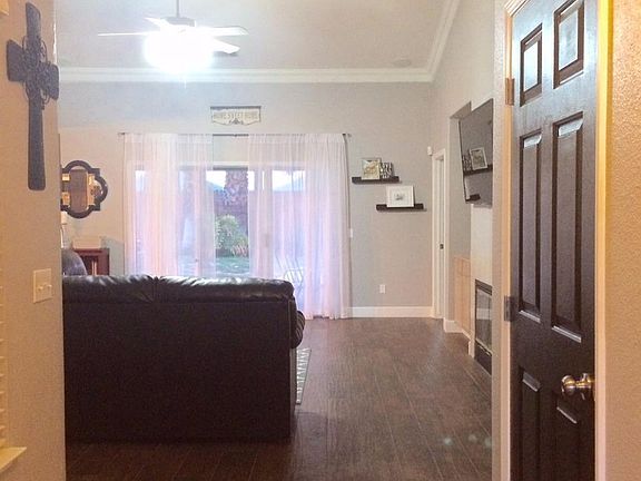 Modern & Elegant 3 bedroom, 2 bath located in a quiet cul de sac on a CORNER lot with beautiful mature landscaping. Home shows beautifully with a large vaulted open living room and dining room with large master bathroom with tub and spacious shower. Home also offers walk in closets with lots of storage space. Home has beautiful crown molding throughout the home with tile wood-like floors and modern stylish fixtures. Amenities includes surround sound system inside the home and seller is leaving outdoor spa for the next buyers. Also, has 3 car garage, tile roof and a backyard that's ideal for entertaining with beautiful scenic mountain views. MUST SEE, won't last long.