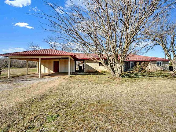 Welcome to your spacious oasis nestled 5 minutes outside of Lawton. This delightful 2200 sq ft home offers the perfect blend of comfort, convenience, and tranquilty on a sprawling 7+ acre lot on a dead end, low traffic road. The home is placed in the middle of the acreage for even more privacy. Step inside and discover a generous living space boasting 3 bedrooms and 2 baths spread across a well designed floor plan. There is wood laminate flooring throughout the house with tile in the kitchen and dining area and a nice large living area to include a cozy fireplace with a blower. The primary bedroom offers two large walk in closets and the en suite bathroom offers a large walk in shower. Exterior walls are built with 2x6's making a strong well insulated house. The carport has plenty of room for two vehicles and has a 132 sq ft building attached that can be used as a garage or storage. The property also features a 30X40 shop with power and outlets on the walls and a built-in loft for more storage. The breaker box also has a 220 volt breaker included. Experience the epitome of country living with plenty of trees and a nice pond while remaining conveniently close to city amenities, schools, jobs, and recreational opportunities. Contact Tiphanie Murphy to view @ 580-512-2135.