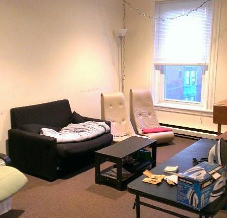 3 Bd 1 bath - spiral staircase...decorative fireplace, induction stove Beautiful red brick bldg entrance w trees/shrubs Electric heat 3 bed 1 bath tiled bathroom electric flat top induction stove w oven spiral staircase! well-lit rooms with windows decorative fireplace! large living room