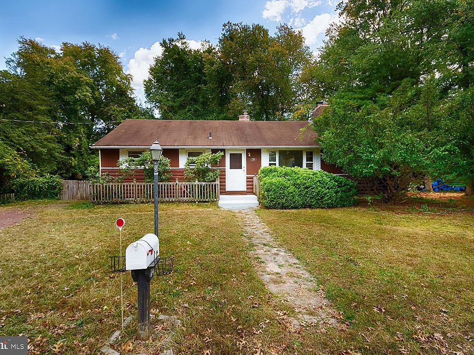 Now is your chance to live in the lake community of Medford Lakes! This ranch home is situated on a lovely trail in the heart of town. Walk/bike to Beach 1, Brooks Field, Vaughan Hall, and Nokomis. The perfect location! A spacious stone driveway provides plenty of off street parking, a front half log exterior, and natural landscaping. Enter into the spacious living room with hardwood flooring, coat closet, brick wood burning fireplace, and picture window to the front yard. The kitchen has a vaulted ceiling with sky light and is open to the dining area and family rooms. Step down to the dining room with wood flooring and sliding glass doors to the deck. The family room has ceramic flooring, built in storage cabinetry, and a door to the screened in porch. The bedroom wing has access to the attic, a large bedroom with numerous closets and sliders to the deck, this room used to be 2 bedrooms and could be put back to a 3 bedroom house if needed. Bedroom 2 has hardwood flooring and closet storage. The full bath has a tub/shower combo and linen closet storage. There is also a spacious utility/laundry room with storage, washer, dryer, and utility sink. The half bath has a window and is located off of the kitchen area. This home has a great backyard, large enough for all your summer plans, with a storage shed, fencing, super sized deck, and screened porch. Enjoy all that Medford Lakes has to offer - the Playground-In-The-Pines!