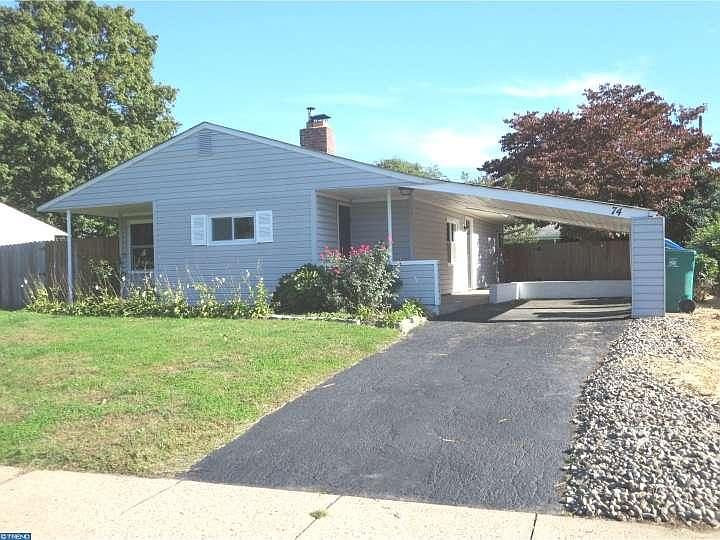 A hard to find" DREAM " remodeled ranch (Levittowner)in desirable Stonybrook section that has been upgraded inside and out. Pull up to the front of this home and appreciate the improvements at once. Exterior features maintenance free shiplap vinyl siding, new double hung vinyl windows in kitchen, living room and small bedroom. Large fence-in private rear yard and cement patio off of kitchen, great for entertaining and enjoying the warm weather. Two car macadam driveway, replaced curbs and apron. Enter into open floor plan and you'll be impressed with the upgrades throughout! Kitchen has been totally remodeled with new white shaker wood cabinets, granite counter tops with stainless steel drop in sink and pull out faucet, subway ceramic tile back splash,stainless steel glass top range, microwave and dishwasher, ceramic tile flooring and crown molding. Kitchen opens into the Living room with granite counter top, great for entertaining. Dining area has ceramic tile flooring extending from the kitchen and been expanded by removing the vestibule and coat closet, making the space able to accommodate a large dining table. Living room with brick fireplace, laminate flooring, ceiling fan and exterior door to rear yard.Three bedrooms with newer w/w carpeting, updated full hall bath features ceramic tile walls w/ glass inlay and ceramic tile floors and wood vanity. Spacious laundry room/mud room off of kitchen featuring ceramic tile floors and exterior door.Extras include above-ground oil tank on side of home, pull-down attic stairs in laundry room, great for storage. Freshly painted interior with 6 panel doors and crown molding. Close to shopping, public transportation (train st) major roads and bridges. FHA/VA qualified, making home easy to acquire with low down payment. Put it on your list, this one won't last.