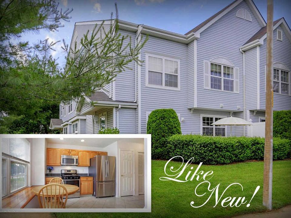Situated in a premium lot with privacy and a pond view, this beautiful Adams end unit is literally move-in ready for its next owner. Newer hardwood flooring throughout the two main floors, and a light airy feel from the large windows that highlight the unit. Large living room area, separate dining room with a closet to store tablecloths or other items, large eat-in kitchen with updated appliances, and laundry area. 2 generously sized bedrooms including the large master bedroom with en-suite master bath with its jacuzzi tub and separate shower. The third-floor loft area, with its large windows and skylight,can be used as a third bedroom or home office. 2 walk-in storage areas, one finished, provide additional space for items. Clean and gorgeous, your clients will fall in love!