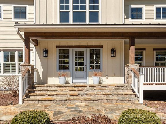 The main level boasts an impressive entry with vaulted ceiling, great room with handsome stone fireplace, cozy den, chef's kitchen with granite tops, breakfast bar, primary suite with spa-like walk-in shower and laundry/mud room with sink. The upper level features 3 bedrooms and a full bath. Outdoor luxury living at its finest with the covered front porch.