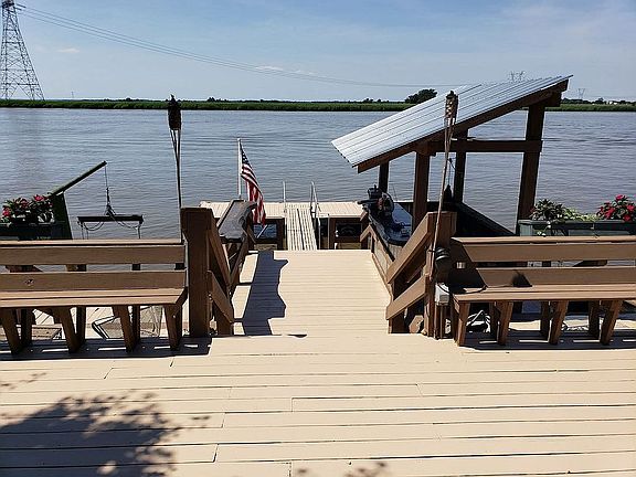 3 bedroom 3 bath, open floor plan. 2 propane fireplaces, single family house on the salem/delaware river. Includes floating dock. Finished basement. 2 decks, outside tiki bar, hot tub. Generator supporting entire house.