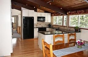 Excellent location with an amazing open floor plan. This deckhouse has stunning cedar cathedral ceilings. Kitchen and baths have totally been remodeled and upgraded. Interior is freshly painted with new window treatments. New aluminum roof, deck, and driveway are just a few of the many updates. A warm and inviting home with a private fenced in yard. Amazing outdoor living space including a 600 sq ft patio containing an outdoor kitchen and large stone firepit. Yard also includes a 16'x9' shed that matches the house color scheme.