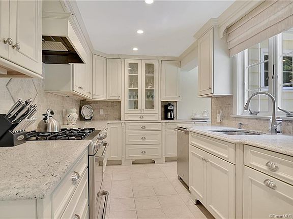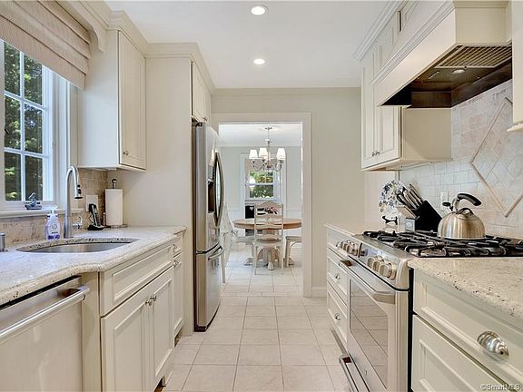 One level living is possible here. Fully updated 4 bedroom Cape Cod that is move in ready. A wonderful backdrop of stately trees surround the broad open lawns giving the feeling of space with fantastic privacy. Updated interior layout takes advantage of the views with the great room and dining room opening out to a wide terrace. There is a study with a separate bath and full closet on the first floor that can double as a fourth bedroom. A large family room with built in bookcases has a separate back staircase to the upstairs bedrooms. Updated kitchen has custom cabinetry with a breakfast eating area and a custom bar area. Upstairs there is a large master bedroom with a full bath, and two additional bedrooms with a full and half bath. Lots of storage, and closets. Outside there is a generator, outdoor shed, mature trees and plantings. Views of the Noroton River across the street offer 4 seasons of beauty all while being walking distance to Talmadge Hill Metro North train station, close to Merritt Parkway, New Canaan High School, Saxe Middle School and West School.