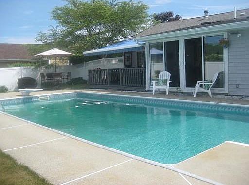 Enjoy the summer in your heated in-ground pool! This home is great for entertaining. The open floor plan leads to a family room with a gas stove, relaxing sun room to a rear deck with retractable awning. The kitchen includes stainless steel appliances, tile back splash and center island. Beautiful living room with newer Anderson bow window and gas fire place, Two bedrooms, could easily be converted back to a three bedroom. Updated bathroom with jacuzzi tub and stand-up shower and additional half bath. Master bedroom has sliders leading to a rear deck. Also features a two car garage and fenced in yard. Move in ready.