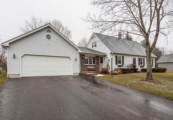 Amazing 3 to 4 bedroom, 2 Bath,Cape located at the end of a Cul-de-Sac in Feeding Hills. Open floor plan in vaulted family room with beams and ceiling fan. Family room is spacious and over looks private,fenced in backyard and Deck. Kitchen includes all the appliances with eat in area. Formal dining room with hardwood floors. Living room has fireplace with stove and picture window that views the front yard. Updated Bath with Jacuzzi Tub on first floor, along with 1st floor bedroom or office. Second floor has 2 spacious bedrooms that have dormers and large closets. Upstairs bath is also updated with tub and shower, new vanity and lighting. Basement is semi finished for work out room or kids play area, additional storage with a bulk head door leading outside. Flat back yard sits on close to 1/2 acre lot, with above ground pool and Shed., New insulated windows, gas heat and air conditioning, vinyl siding, and 2 car attached garage.