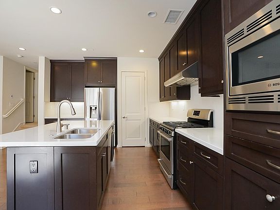 UPGRADED END UNIT OPEN FLOOR PLAN IN THE DESIRABLE CYPRESS VILLAGE COMMUNITY! Step inside and will immediately notice the open floor plan with the living, dining, and kitchen all in one open space. The main level is upgraded with wood flooring, recessed lighting, windows, and a sliding patio door to invite plenty of natural light in. The kitchen is upgraded with Quartz countertops, a center island, stainless steel appliances, a built-in microwave, cabinets with plenty of storage, and a separate pantry for additional storage room. The kitchen overlooks the dining, living and has direct access to the low maintenance rear yard space, perfect when entertaining guests. Total of 3 bedrooms and 2.5 baths. The primary bedroom includes its own bathroom with dual vanity and walk-in closet. Walking distance to Arbor Park and Cypress Village Elementary School. Nearby there are plenty of restaurants, markets, retail, and easy access to the 5 freeway. The lease term is a 1 year lease. There is a $100 key deposit. The rent includes HOA dues. The refrigerator, washer and dryer is included without warranty.