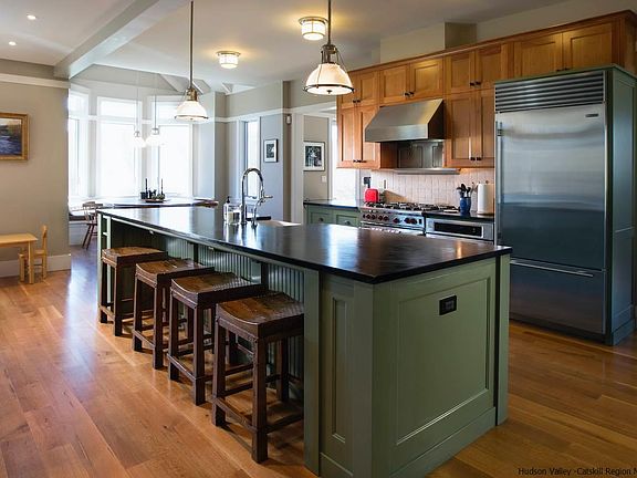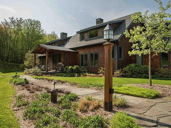 This sprawling, privately set 4+ bedroom home serves up a country lifestyle via the outdoor pursuits and pastimes that invoke thoughts of simpler times. Whether it's following the trail through the woods to swim in the pond, or fishing or picnicking at a magical spot along the edge of the Beaverkill River, there are amenities just a stone's throw from the house that offer the owners an enchanted Upstate experience. Thoughtfully laid-out, the master suite and guest wing are on opposite sides of the house. The master has a sleek bathroom with soaking tub and glass-enclosed shower. The guest wing has 3 bright bedrooms and two full baths. The public spaces are divine, with a chef's kitchen and informal living room with stone fireplace (1 of 3), and a dining area with scenic view. A second living room has a wet bar/wine fridge, fireplace. Upstairs a huge, versatile 1500 sf finished space w/bathroom presents all sorts of opportunities for guest overflow or kids' rec room.