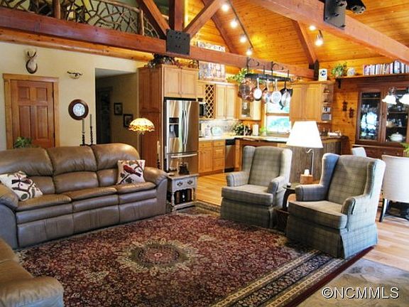 Beautifully appointed upscale log home on one of the large lakes( Ticoa). Excellent view across the lake. A strong running stream abuts the property line. Every detail has been expertly remodeled by the contractor/owner. Upgrades are too extensive to list here. Call the listing agent for details. Absolutely the best combo of quality and price in Connestee Falls. Buyer to pay $8000 UF.