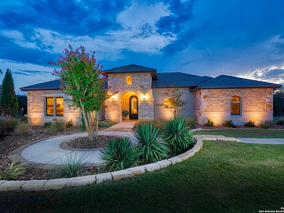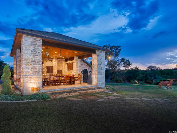 74 Swede Springs - Cordillera Ranch Hill Country Living at Its Finest. Experience timeless luxury and Hill Country elegance at this breathtaking Cordillera Ranch estate, custom designed by renowned architect Gustavo Arredondo and masterfully built by Stadler Custom Homes. Perfectly sited at the end of a quiet cul-de-sac on 5.46 private acres, this one-of-a-kind property offers stunning Swede Creek frontage, expansive Hill Country views, and unmatched privacy. The 5,689 sq. ft. main residence features a versatile layout with dual master suites, each with private outdoor access, spa-inspired bathrooms, and intricate ceiling details. A dedicated master study adds functionality and privacy for work or relaxation. The chef's kitchen is outfitted with premium Thermador appliances, flowing seamlessly into a warm and inviting family room and dining area-all with sweeping views of the surrounding landscape. An oversized four-car garage includes a spacious upstairs storage area, perfect for additional workspace or seasonal storage. Step outside to beautifully curated outdoor spaces that invite both serenity and celebration. Highlights include: 1. Expansive veranda with flagstone patios 2. Resort-style pool & spa 3. Custom stone fire pit and putting green 4. Private guest house: 2,497 sq. ft. with 4 bedrooms, 3 bathrooms, full kitchen, living area, private veranda, and hot tub overlooking the park 5. Elegant dining pavilion with gourmet outdoor kitchen, wood-burning pizza oven, and climate-controlled wine room for over 500 bottles Modern Comforts & Infrastructure: This estate offers modern convenience with central water and sewer, plus high-speed fiber optic internet-a rare find in such a natural setting. Whether you're hosting unforgettable gatherings, relaxing in complete privacy, or simply enjoying the sounds of Swede Creek from your veranda, 74 Swede Springs delivers Hill Country luxury without compromise.