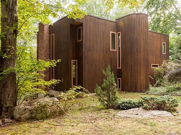 If you are looking for a really cool, unusual Contemporary home in the woods, yet only a mile from the Guilford Green, THIS IS IT. No doubt it needs some TLC, but well worth the effort to live in the beautiful WESTWOODS area where hiking and snow shoeing is the winter sport for many. House has good bones and is truly one of a kind in design. Three smaller bedrooms, 3 full baths and 1 half bath and a really neat first floor with sunken living room. Definitely worth a look, use SHOWTIME and book a look.